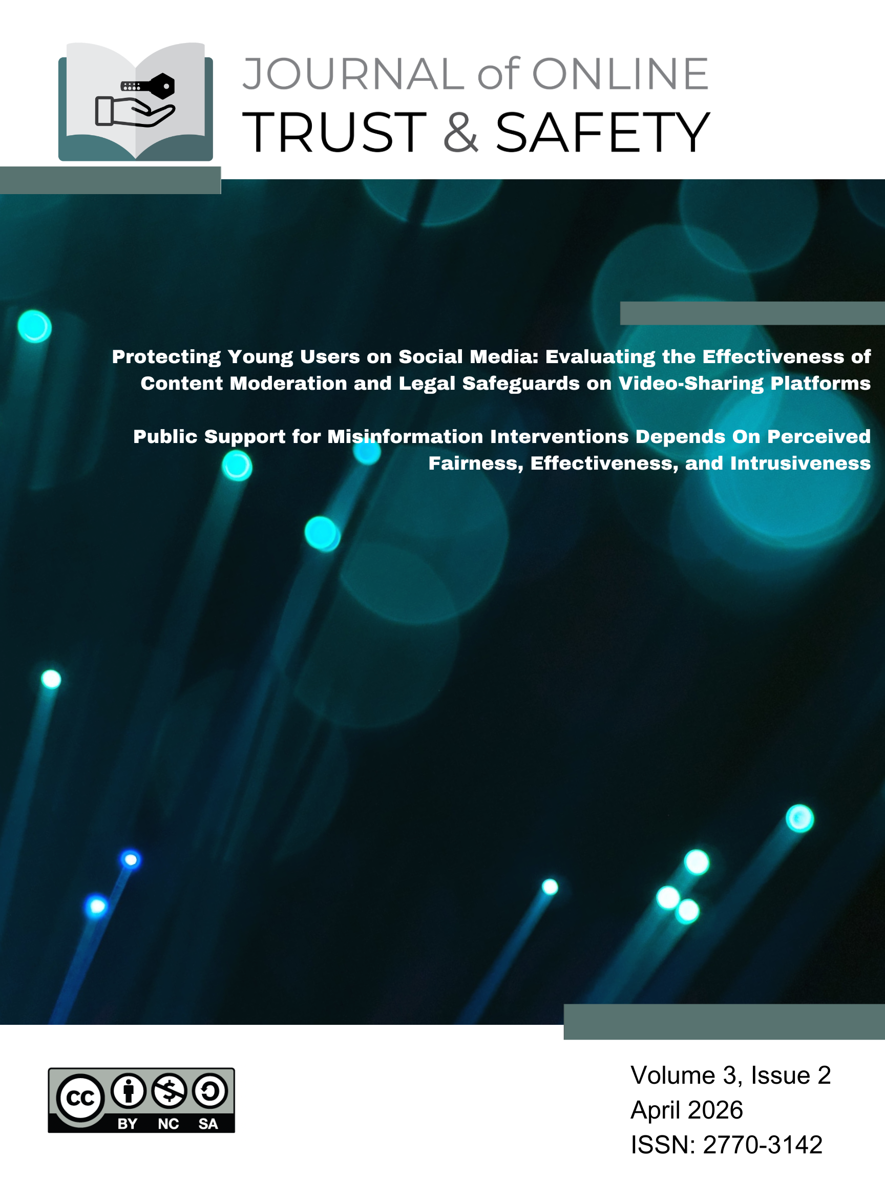 The Spring 2026 issue of Journal of Online Trust and Safety features both peer-reviewed articles and commentaries examining a range of topics, including algorithm audits focused on issues around child safety,  surveys of public support for misinformation interventions, and more. Articles will become available as they are published, and the full issue will be published by end of April, 2026. The Journal of Online Trust and Safety is grateful to the Omidyar Network for their generous support.